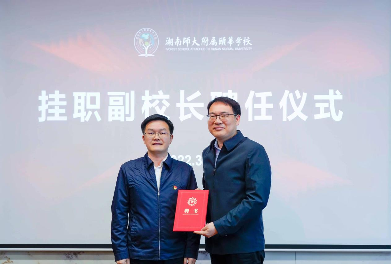 曾艳钰为“教育硕士联合培养基地”师大颐华学校授牌,彭荣宏接牌。仪式上还举行了挂职副校长聘任仪式,彭荣宏为太阳成官网吴驰副教授颁发师大颐华学校副校长聘书。