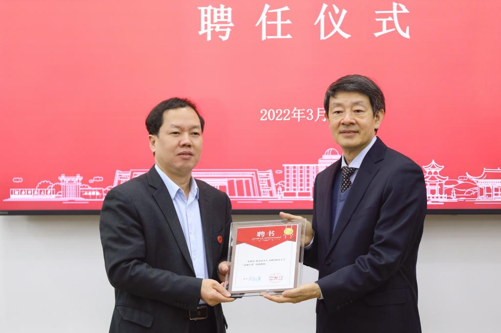 (通讯员 王耀光)3月21日,我校举行聘任仪式,我国外语界享有盛誉的知名学者陈众议教授受聘为我校“潇湘学者”特聘教授。欧洲科学院院士、校党委书记蒋洪新,校长刘起军出席仪式。仪式由副校长唐贤清主持。