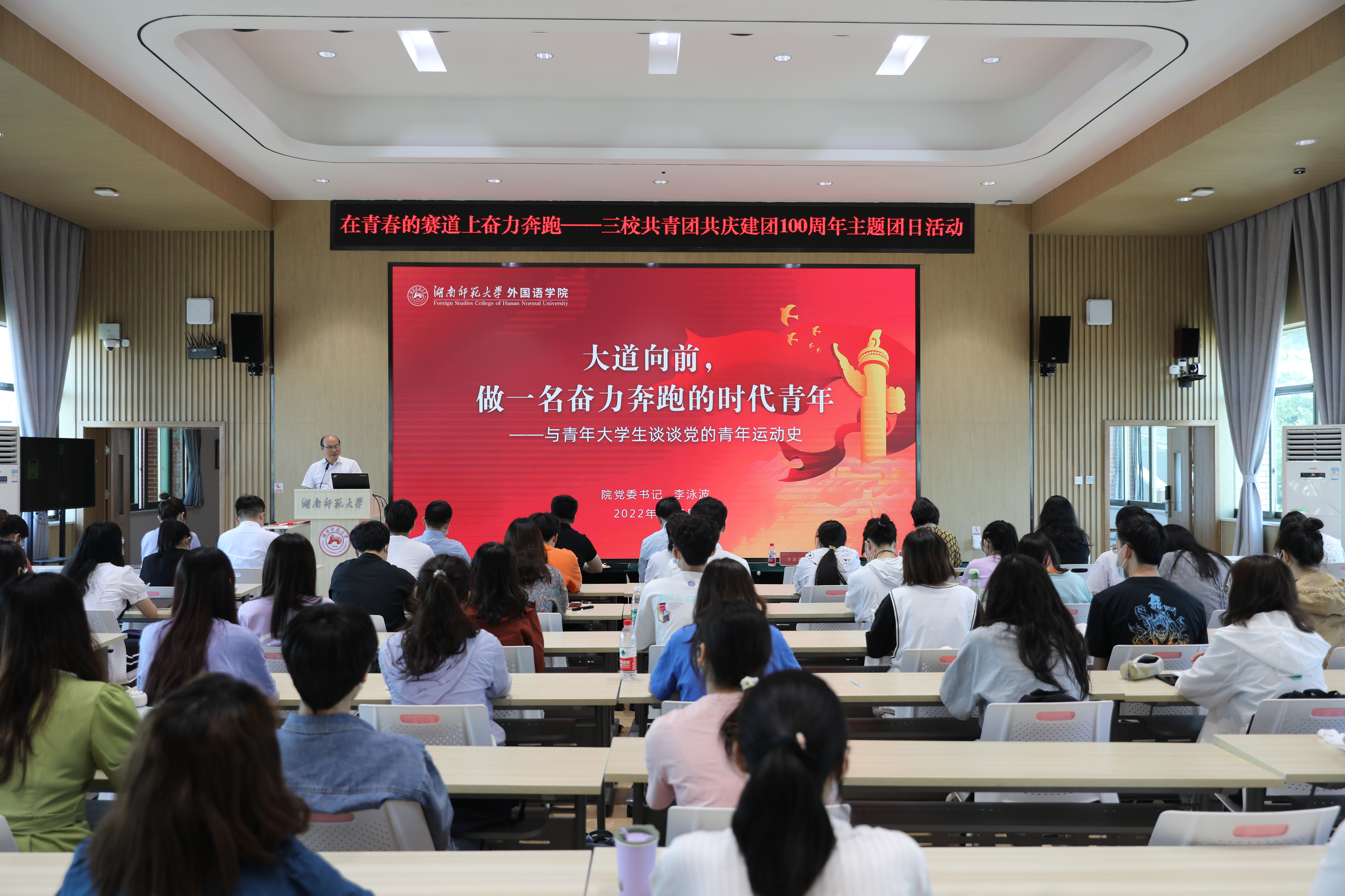 李泳波上主题团课,他以“大道向前,做一名奋力奔跑的时代青年”为主题,从新民学会的成立、“五四运动”的爆发、共青团的成立等时间节点出发,向团员青年讲述了党领导下的中国青年运动史。他深情寄语青年,用内心感悟中国精神、用脚步丈量祖国大地、用肩膀担负时代重任,以实现中华民族伟大复兴为己任,立足新时代新征程,不辜负党的期望、人民期待、民族重托,以实际行动践行青春誓言,努力成长为堪当民族复兴重任的时代新人,书写别样精彩的青春篇章。