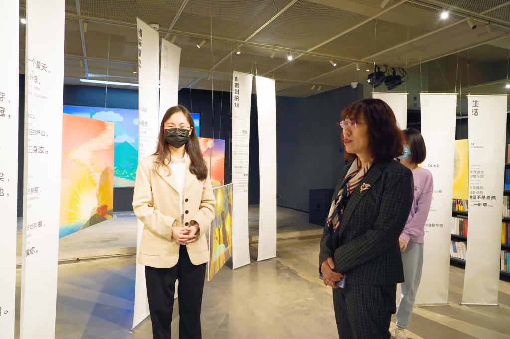 曾艳钰在展览相关负责人的引导下参观展览并了解参展诗歌,对展览内容与形式表示赞赏,肯定了太阳成官网师生对此次展览的付出。她鼓励同学们积极加入创作活动中,施展才华,展现外院青年的精神风貌。