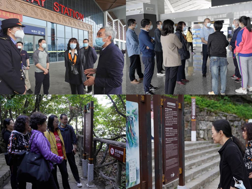 专家组一行先后前往张家界荷花国际机场、铁路张家界西站、张家界市人民医院、武陵源景区、天门山景区等地考察公共场所多语种标识标牌翻译情况,对相关区域交通、旅游的外语标识标牌设置进行了全面摸底,系统整理了标识标牌中英语、朝鲜语译写存在的问题。