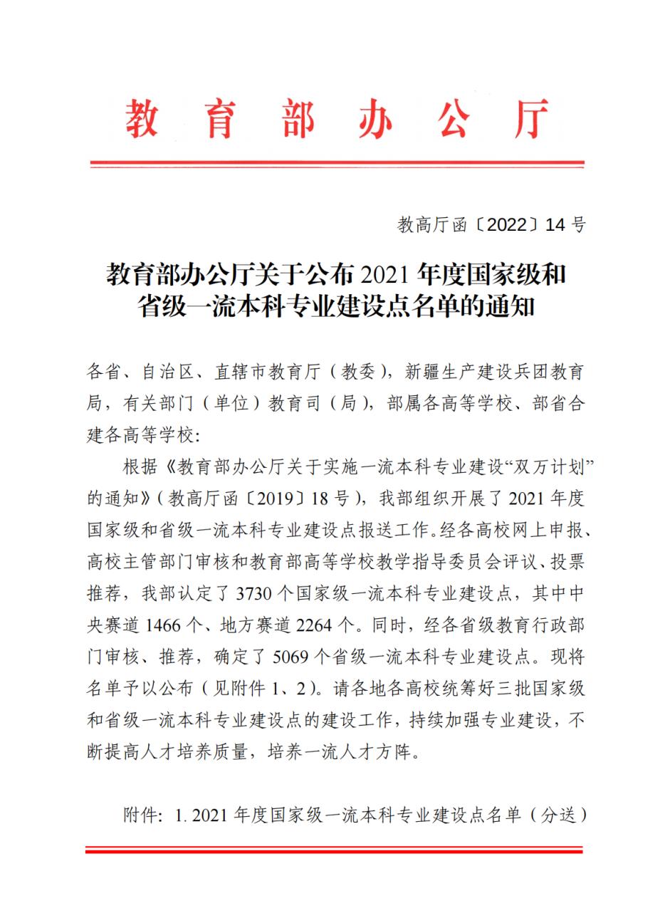 据悉,本轮一流专业建设点的申报工作是自2019年教育部实施“双万计划”以来,属于最后一轮评选工作。本轮评选中,教育部共认定了3730个国家级一流本科专业建设点,其中中央赛道1466个,地方赛道2264个。本次遴选中,我校共有11个专业获批国家级一流专业建设点。目前,我校共拥有国家级一流专业建设点49个,稳居省属高校榜首。
