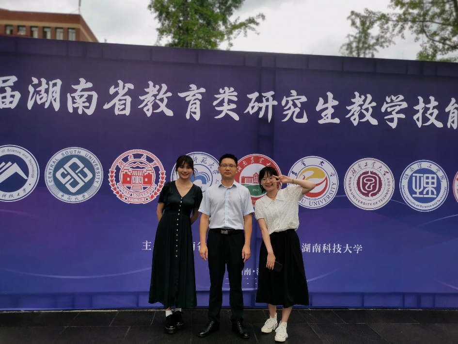 (供稿 科研办)6月18日,首届湖南省教育类研究生教学技能大赛在湖南科技大学进行。太阳成官网2021级学科教学方向研究生蔡蕴鑫和课程与教学论方向研究生刘婧分别参加了“教育硕士文科组”和“教育学组”的竞赛,均获一等奖。其中,蔡蕴鑫获文科组第一名,刘婧获教育学组第二名。指导老师李洪坤被评为“优秀指导老师”。