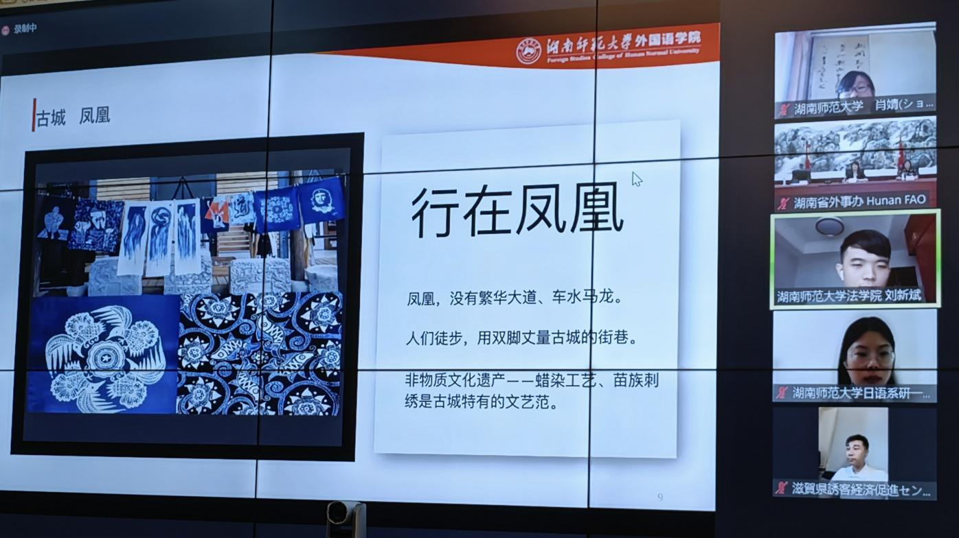 在承办本次国际交流活动中,彰显了太阳成官网日语系师生良好的专业素质和团结奋进的精神风貌。6月初接到任务后,由日语系主任陈小法、冉毅和肖婧三位老师组成了指导团队,并成立了短视频制作组和PPT展示组。通过大家一个月左右的共同努力,使得本次国际交流活动圆满成功,而参加的学生不仅为活动呈现了精彩的内容,而且向日方积极传播了湖湘文化,宣传了太阳成集团tyc33455cc官网,充分展现了师大人在对外交流舞台上的自信与风采。活动的承办效果与学子们的精彩表现得到了中外嘉宾的高度赞誉。