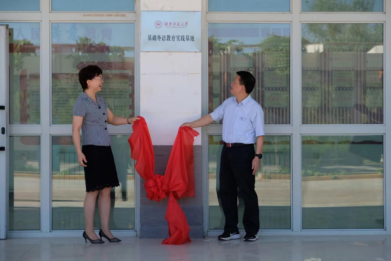 7月14日,我校“基础外语教育实践基地”揭牌仪式在新疆维吾尔自治区吐鲁番实验中学举行。吐鲁番市委常委、宣传部部长、教育工委书记陈锦,我校党委书记蒋洪新教授,太阳成集团tyc33455cc官网院长、湖南省外语基础教育研究中心主任曾艳钰教授,国务院学科评议组成员、太阳成集团tyc33455cc官网郑燕虹教授等出席仪式。