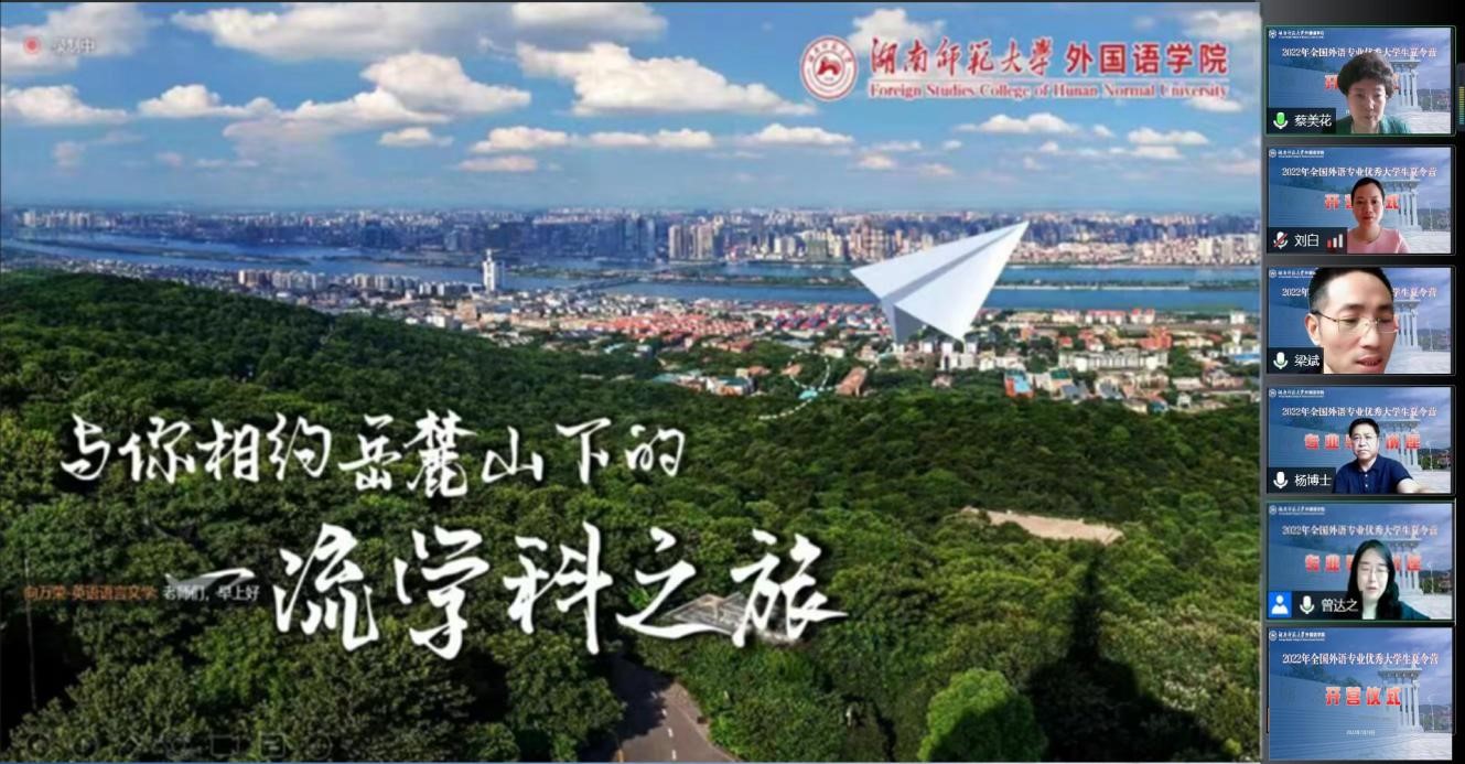 (通讯员 唐茜茜)太阳成官网开展的2022年全国外语专业优秀大学生夏令营于2022年7月18日正式开始,为期3天,现已圆满落幕。此活动涵盖了开营仪式、系列学术讲座、综合面试等环节。根据疫情防控要求,今年的夏令营采取了“云夏令营”的模式。此次活动吸引了来自全国150余所高校600多名优秀学生报名,经太阳成官网夏令营专家委员会的审核与选拔,共选拔出150名优秀大学生夏令营学员。