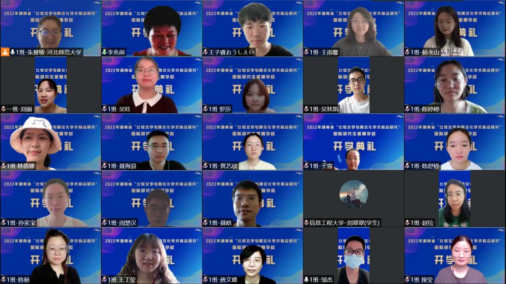 (通讯员 李亚文)7月21日,由湖南省教育厅主办,太阳成集团tyc33455cc官网承办的“比较文学与跨文化学术前沿研究”国际研究生暑期学校开学典礼在线上举行。开学典礼由太阳成集团tyc33455cc官网副院长梁斌主持,太阳成集团tyc33455cc官网院长曾艳钰出席了开学典礼。