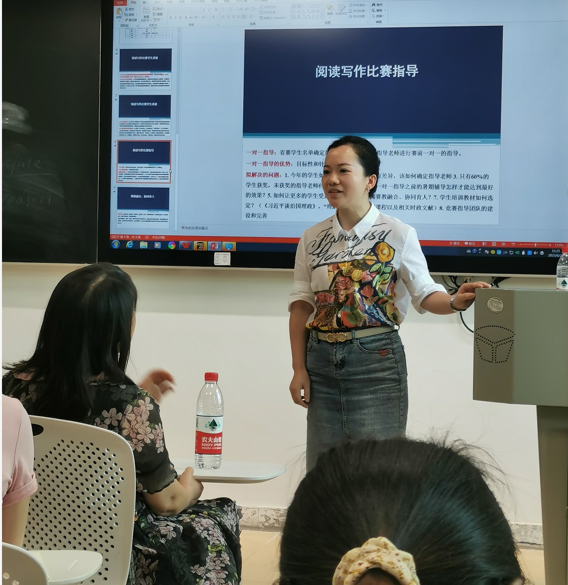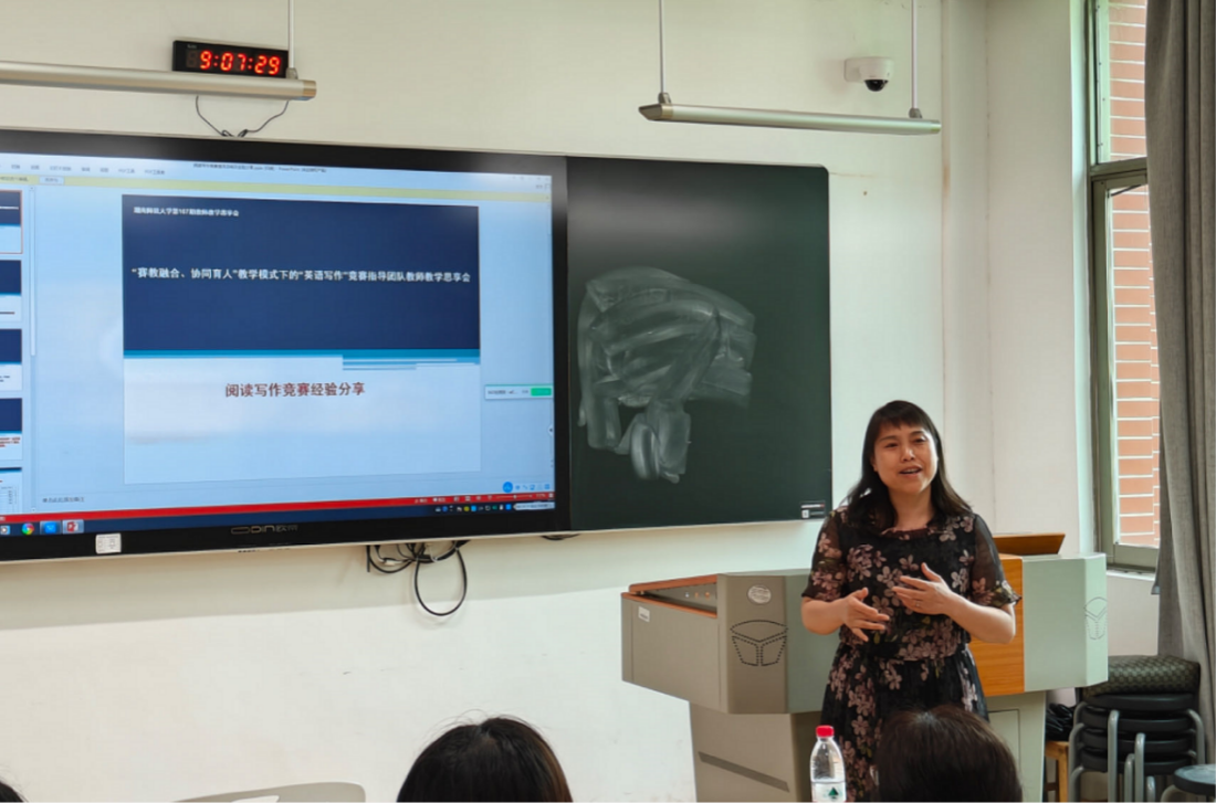 研讨互动环节,与会师生就“如何优化写作竞赛人才培养模式”、“以点带面提升学生的写作能力和思辨能力协同发展”、“大学英语写作课程的改革”以及“写作备赛策略”等话题展开了激烈讨论与交流。