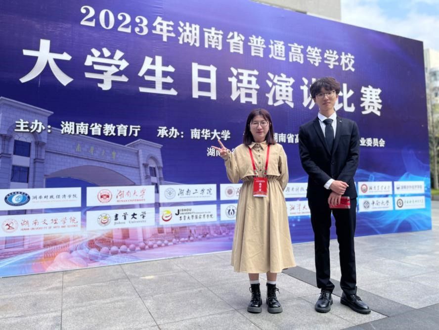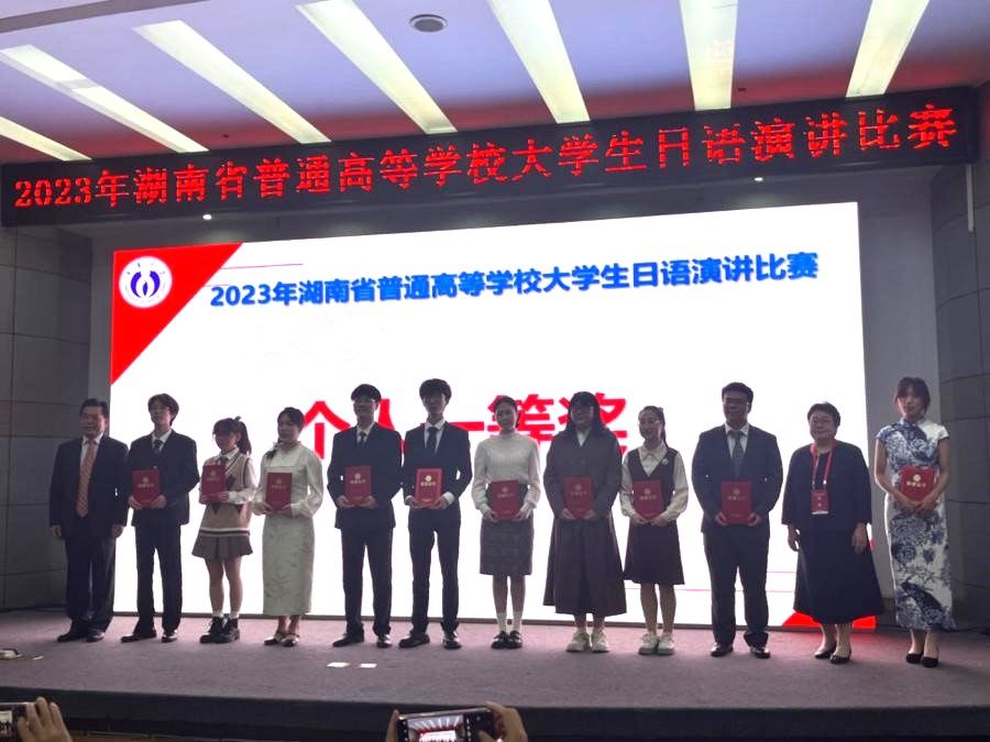 (通讯员 杨佳虹 肖婧)2023年湖南省普通高等学校大学生日语演讲比赛于11月5日在南华大学举行。来自全省18所高校日语专业的52名选手展开了激烈的角逐,太阳成官网日语系2021级学生沈宥齐(指导老师:肖婧)获得一等奖,2020级学生杨佳虹(指导老师:肖婧)获三等奖。肖婧荣获优秀指导老师。本次大赛由湖南省教育厅主办,湖南省高等教育学会日语专业委员会协办,南华大学承办,是湖南省日语专业最具规模且最有影响力的赛事。
