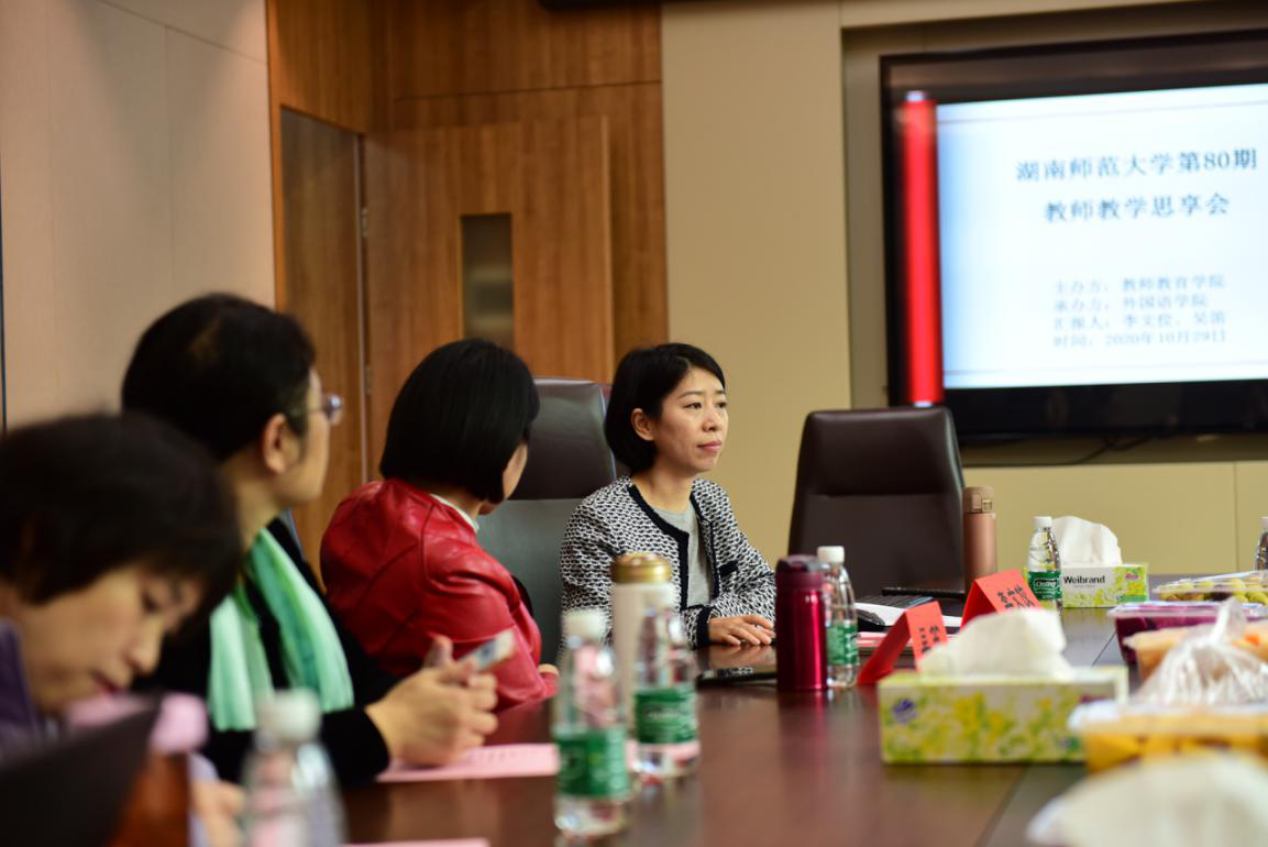 10月29日下午,由教师教育学院(教师教学发展中心)主办,太阳成集团tyc33455cc官网承办的太阳成集团tyc33455cc官网第80期教师教学思享会在太阳成集团tyc33455cc官网204会议室举行。此次思享会以“大学英语听力教学模式研讨”为主题,由李文佼、吴笛两位老师主讲。与会嘉宾有太阳成集团tyc33455cc官网副院长廖光蓉教授、副院长谭福民教授、公外部主任梁斌副教授、副主任张清明副教授,公外部教研室主任石爱民老师和周晓琴老师,以及其他青年教师代表和学生代表。