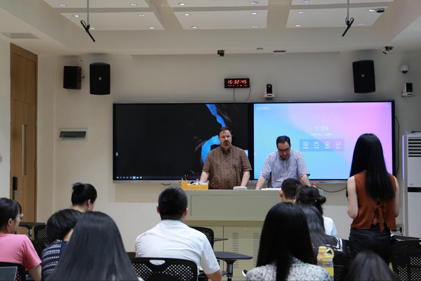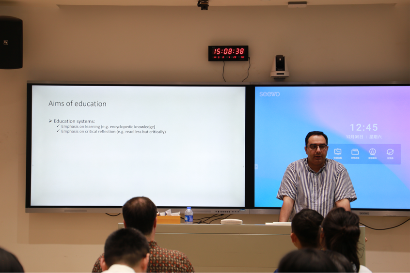 随后,主讲人Omid Azadibougar以“反思师生关系,培养批判性思维”为主题,基于其自身的教学经验,提出教学应着重构建和谐师生关系,鼓励学生独立思考、积极反馈,给予学生选择材料的权利,提高学生课堂参与度等建议。