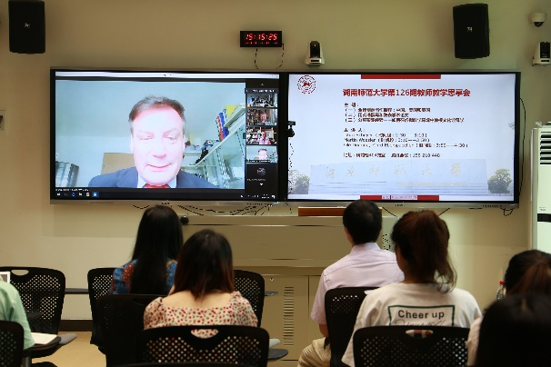 (通讯员 邹鑫 雨司妤)6月24日下午,我校第126期教师教学思享会以线上线下相结合的方式在太阳成集团tyc33455cc官网举行。太阳成集团tyc33455cc官网翻译系主任余承法、院长助理蒋莉华担任此次思享会主持人。英语系教授Lauri Scheyer、翻译系教授Martin Woesler、Ole Doering、Cord Eberspaecher担任会议主讲人。