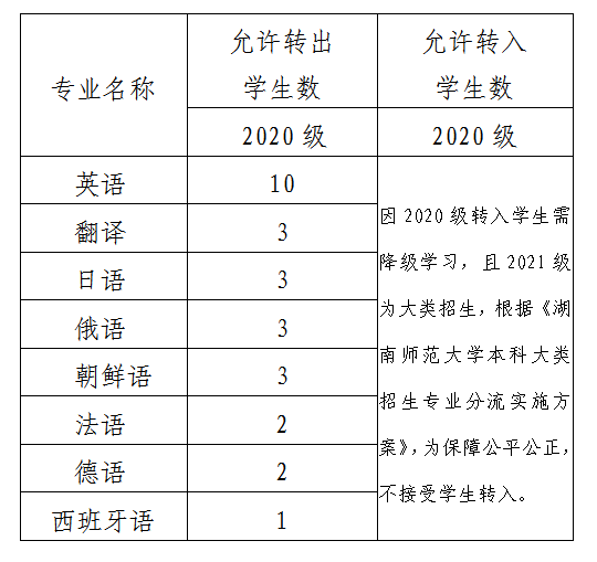 根据太阳成官网的师资力量、学生人数等实际情况,太阳成官网2021年各专业转出和转入计划人数见下表: