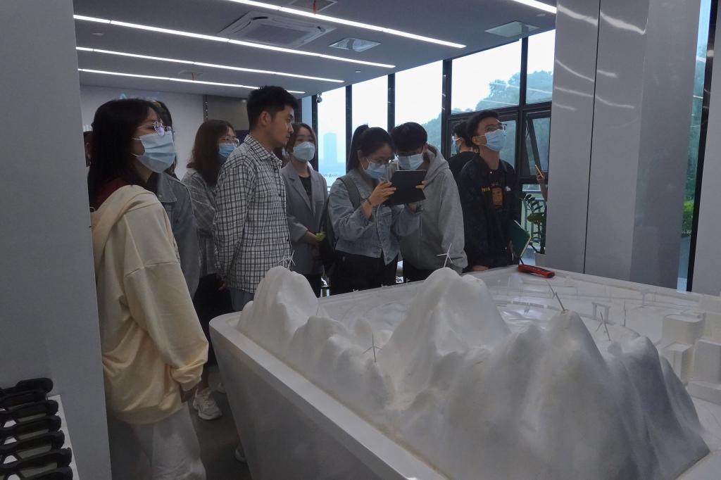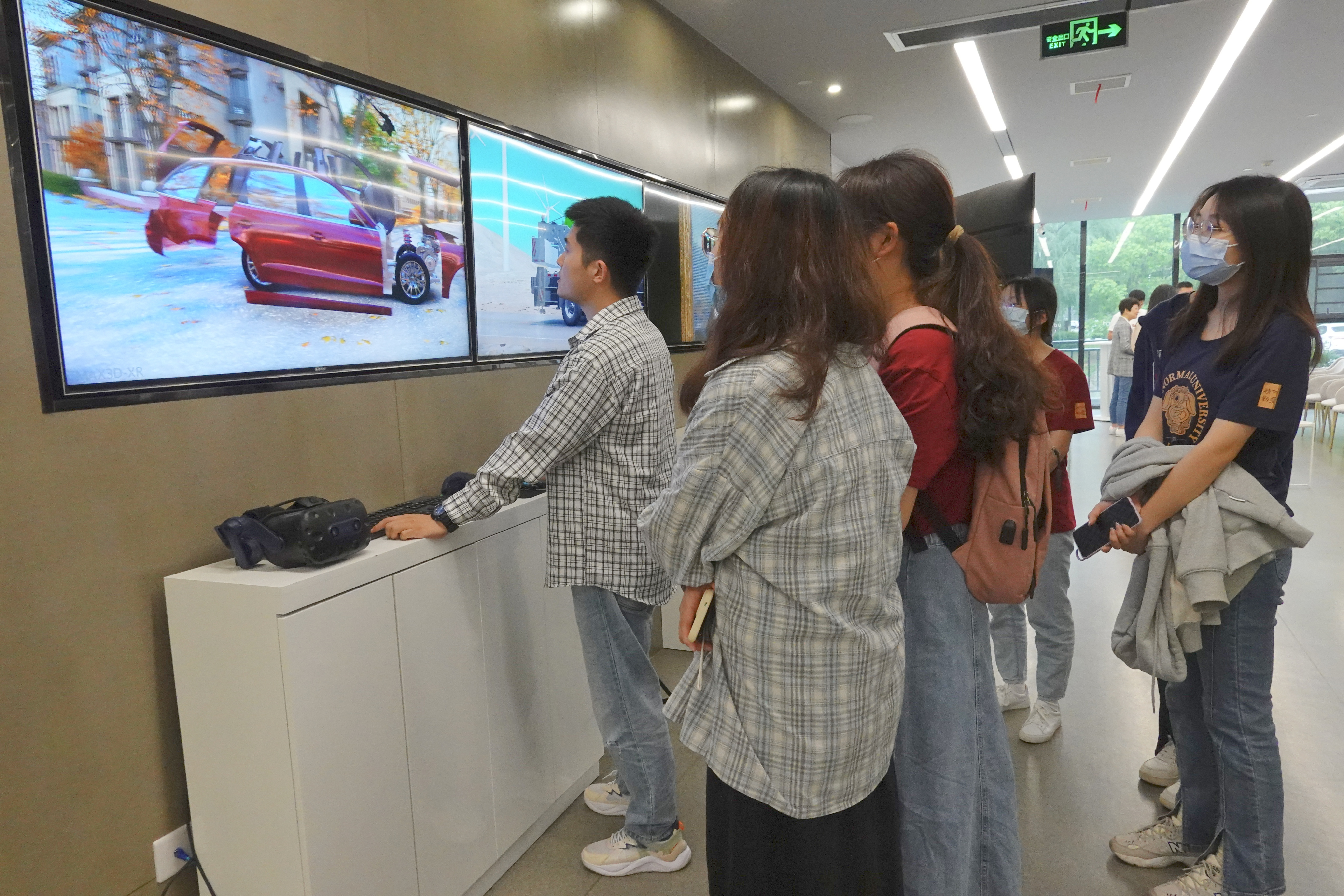 “太真实了,戴上VR头盔的瞬间,周围的环境全都变了个样儿,好像进入了新的世界。”在位于月湖文创小镇的长沙宏达威爱信息科技有限公司,课程学生们亲自体验了数字虚拟人物技术、工程机械AR沙盘与VR头盔技术。在这里,三一重工的巨无霸卡车、山河智能的旋挖钻机、中联重科的中大型起重机“身轻如燕”、灵活多变,通过先进制造业5G云VR公共服务云平台的超高清建模,长沙工程机械的魅力尽展。期间,课程师生们围绕借助新兴技术优化外语乡村教育帮扶模式、提升跨学科研究路径、创新社会实践课程学习等展开交流。