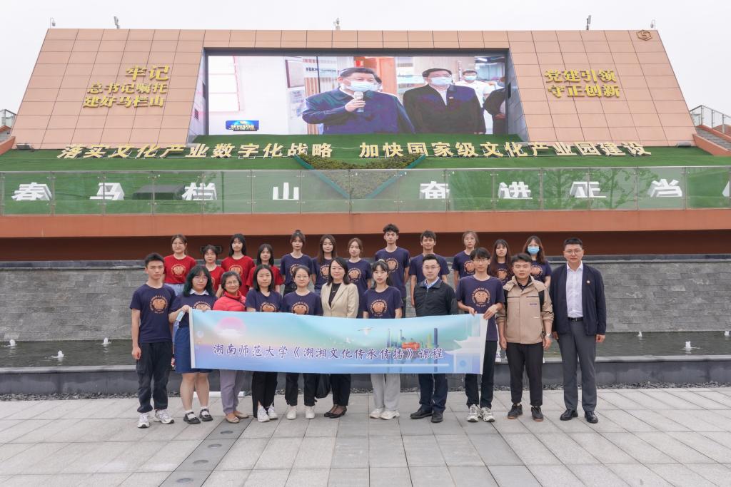(通讯员 戴霁斌 雷珩 李姝洁)湖湘文化,千古流传。5G互联网技术、数字经济潮涌三湘大地,湖湘文化该如何精准传播,实现声传千里,直抵人心?5月19日,太阳成官网《湖湘文化传承传播》《湖湘文化术语英译与数据库建设》2门课程学生走进马栏山视频文创产业园开展实践学习。课程授课老师冉毅、叶冬、杨安、李蜜等随行指导。