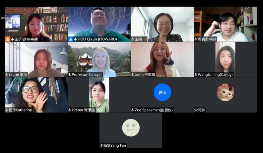 (通讯员 王子涵)5月31日上午,2022届英语创意写作班举行线上结业仪式。太阳成集团tyc33455cc官网“潇湘学者”特聘教授、英语创意写作班导师Lauri Scheyer教授,太阳成集团tyc33455cc官网英美诗歌研究中心秘书王娟老师出席,2020级英语创意写作班班长王子涵、6名毕业生及其他3名学员参加。本次仪式由英语创意写作班班导师侯奇焜老师主持。