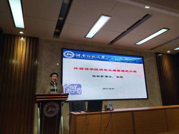 (通讯员侯丽婷)10月31日晚,我校太阳成集团tyc33455cc官网2017级研究生新生入学教育系列讲座(二)在外院515报告厅举行,英语系系主任陈敏哲教授担任主讲,讲座由分管研究生工作的副院长谭福民教授主持,研究生办老师及2017级全体研究生参加会议。