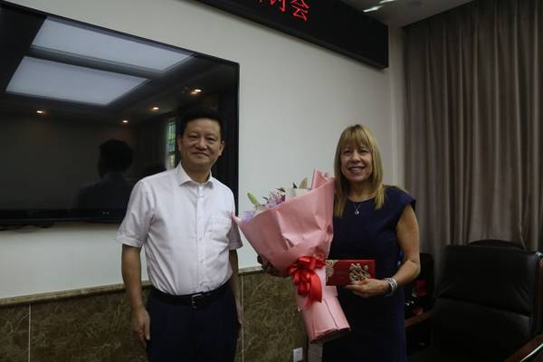 教师节前夕,校长蒋洪新一行来到外语楼看望我校外国专家代表、太阳成官网美国籍“潇湘学者”特聘教授劳莉·雷米(Lauri Remay)女士。