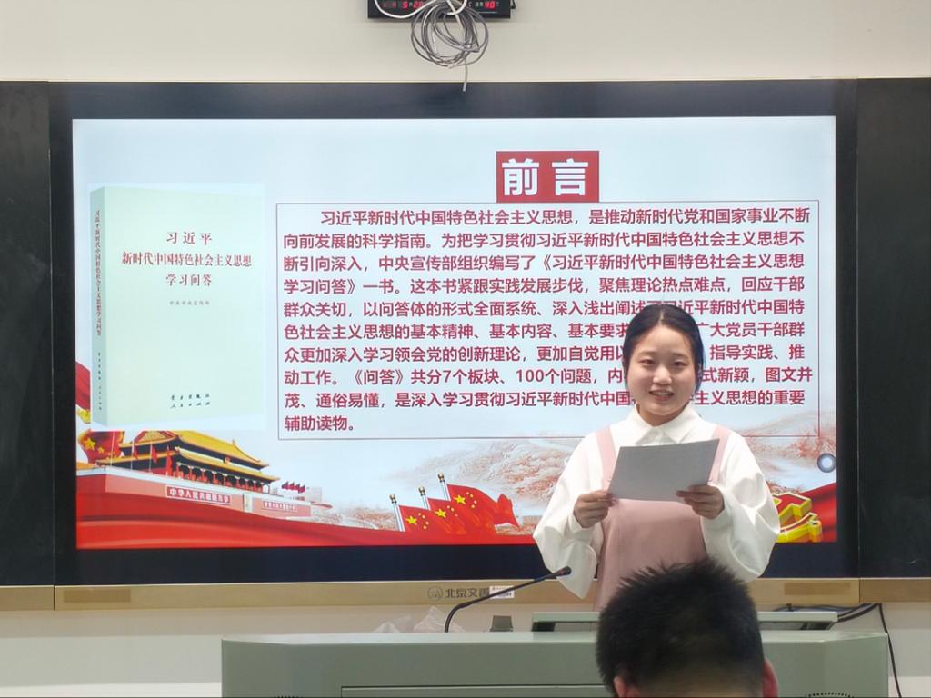 本次活动五位同志分享自身学习感悟与收获并号召全体党员同志们弘扬优良传统,传承红色基因,要做到心中有党、心中有责:文雯讲到要“追随毛主席脚步,践行初心担使命”,胡佳分享从关键词看《中国共产党简史》,陆皓宇讲到要从读原著、学原文、悟原理中学好用好《习近平新时代中国特色社会主义思想学习问答》”,徐湘婷分享“加强党性修养,推进自我革命——重温刘少奇《论共产党员的修养》”,张皓楠陈述自身读《做焦裕禄式的县委书记》的体会,呼吁党员们自觉当依法治国的推动者和守护者。
