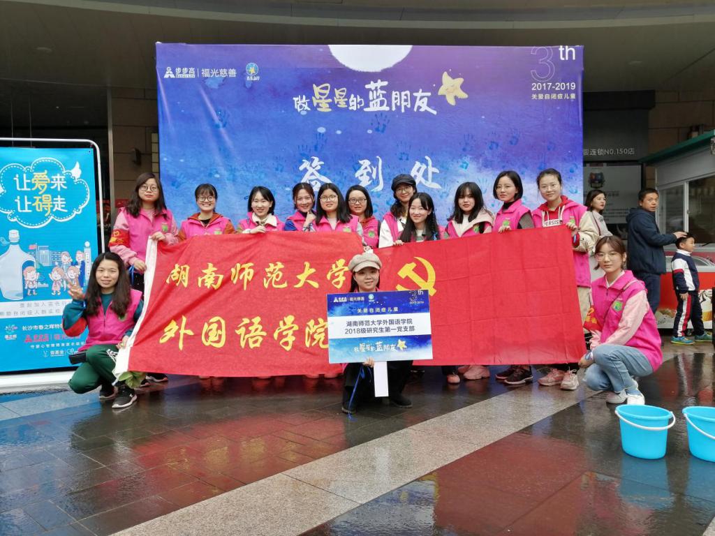 (通讯员 刘慧娟 余红)4月13日,太阳成官网2018级研究生第一支部在长沙梅溪湖步步高新天地参与了由步步高福光慈善基金会主办的第三届“星星点灯·做星星的蓝朋友”大型公益活动,为倡导、推广全社会尊重、关注、了解自闭症儿童成长文化,关注、关爱自闭症儿童的教育,为其创造社会融合学习的机会。