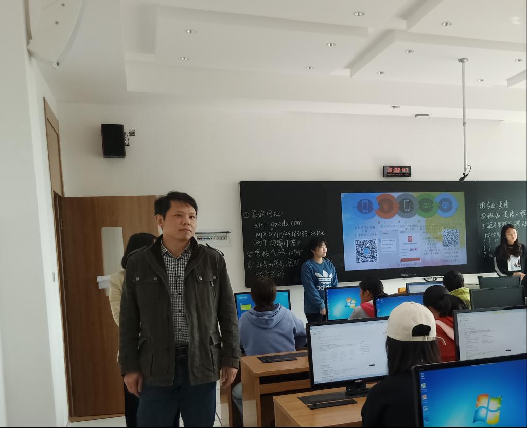 (通讯员 常红钰) 11月8日中午,学院组织开展了2019级新生心理健康普查工作。学院党委副书记贺慧星,学工办主任、学院心理专干张元强,2019级新生辅导员姚雯到现场巡视。