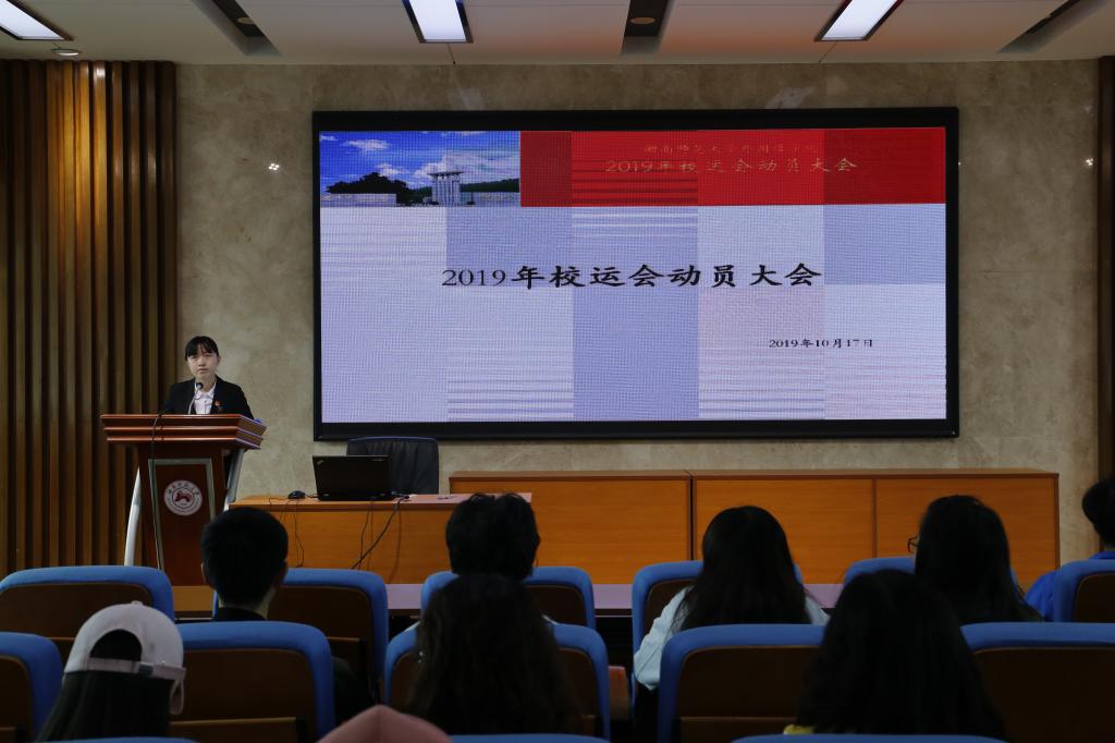 (通讯员 常红钰)10月17日,太阳成官网于515学术报告厅召开2019年校运会动员大会。院党委副书记贺慧星、学工办老师张元强、莫南、周凌月、姚雯、舒怡出席会议。此次大会由院学生会主席欧阳嫣霞同学主持。