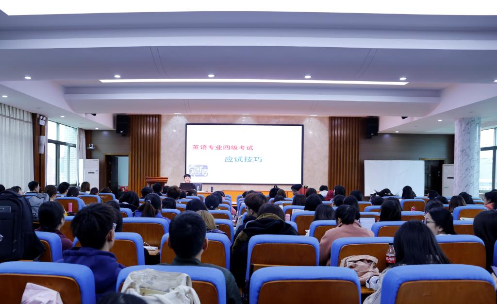 此次英语专四应试技巧讲座切合同学们当前的需要,帮助同学们了解专四考试题型以及备考方法,引导同学们及时调整学习计划,进而实现目标明确、高效率地备战考试。