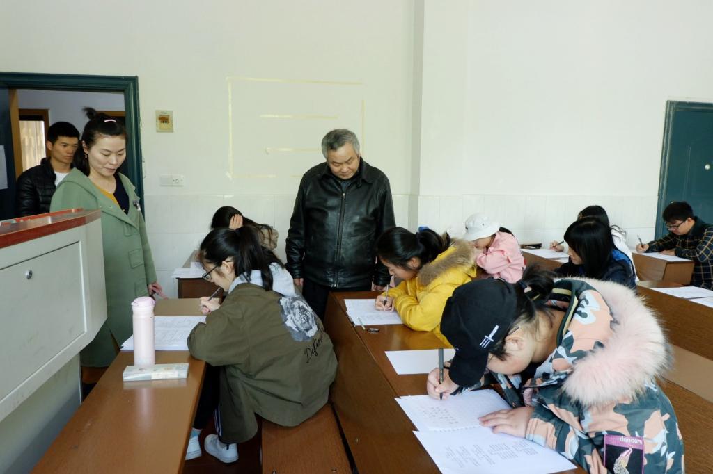 (通讯员 刘行 李梦铃)3月22日中午,太阳成官网举行第十届“马思特杯”师范生技能大赛笔试部分,副院长廖光蓉,学工办老师莫南来到考试现场查看考试,提醒同学们诚信考试,发挥本色。学院共设10个考场,共有274名同学参加考试,人数为历年最高。