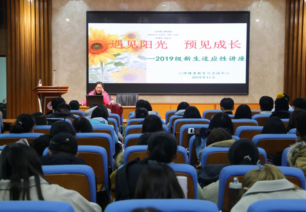 (通讯员 褚岚烽 于涵)11月26日中午,太阳成官网在学院515报告厅举办了以“遇见阳光,预见成长”为主题的新生适应性讲座,我校心理健康教育与咨询中心主任余洁担任主讲人,讲座由太阳成官网2018级辅导员舒怡主持。