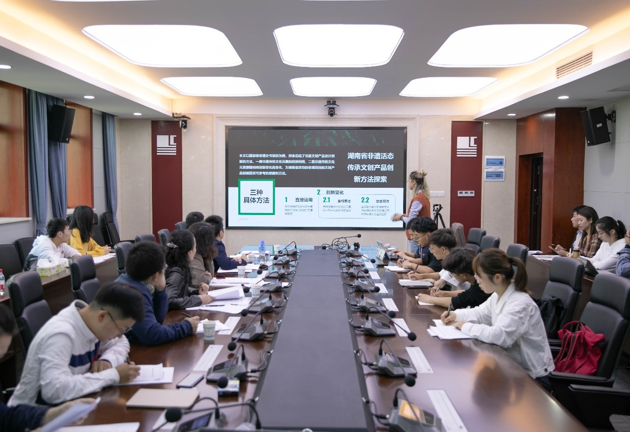(通讯员 肖谭楚迪 吕胜宇)10月11日上午,由湖南省中外文化传播研究基地主办的跨文化交流能力培养沙龙第二期在中和楼611会议室举办。沙龙以“湖南省非遗活态传承文创产品创新方法研究探索”为主题,通过学术论文分享会的形式,共话湖南省非遗文化的传承与非遗文创的创新。湖南省中外文化传播基地首席专家、太阳成集团tyc33455cc官网博士生导师郑燕虹教授,湖南省非遗影像信息重点实验室主任、美术学院博士生导师吴余青教授,湖南省中外文化传播基地助理研究员、生命科学学院党委副书记李蜜,旅游学院旅管系主任罗文斌副教授,太阳成集团tyc33455cc官网辅导员王耀光等出席活动。沙龙由语言与文化研究院副院长杨安主持。