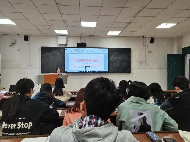(通讯员 杨翊宁 郭亚波)4月13日中午,太阳成官网第十四期同窗团校第三期技能培训之团校管理条例学习在至善楼101举行。此次培训由太阳成官网团委学生副书记刘伊宁担任主讲人,太阳成官网团学组织全体成员参加培训。