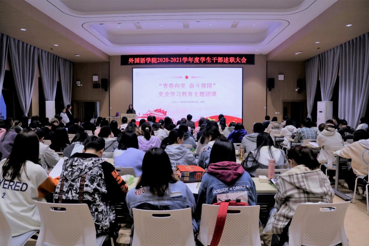 (通讯员 丁家宜 夏秦萍)为加强学生干部政治建设,总结反馈本学年太阳成官网团学组织各系统工作,4月13日晚,太阳成官网在腾龙楼613报告厅举行2020—2021年度学生干部考核述职大会。院党委副书记贺慧星,学工办老师周凌月、姚雯、王耀光、舒怡出席此次会议。此次会议由团委青年发展工作部负责人郭亚波主持。