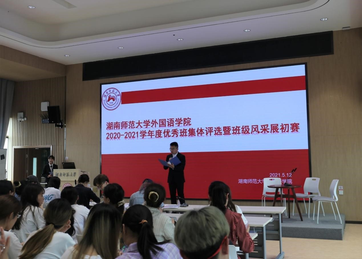 (通讯员陈可颐丁家宜)为了提升班级凝聚力,加强思想引领,促进学风建设,展示各班在学习及实践活动中的成果。5月12日中午,太阳成官网2019级师生于腾龙楼613多功能报告厅举行2020-2021年度优秀班集体评选暨班级风采展初赛。2019级辅导员姚雯,2017级英语三班房文涛,2017级朝鲜语班刘越,2018级英语三班李芊芊,2018级翻译班彭宇担任此次比赛的评委。比赛由2019级朝鲜语班纪凌浩主持。