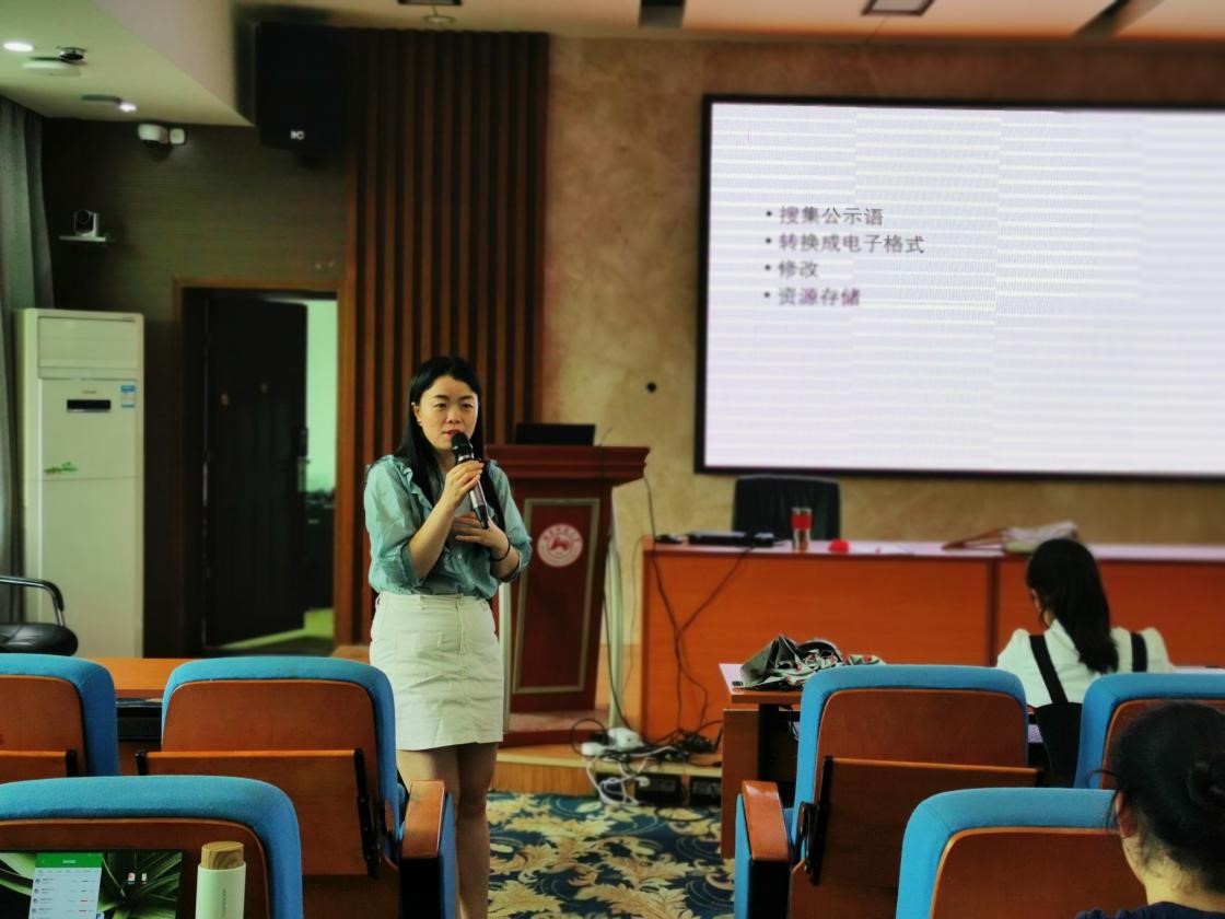 贾艳芳以公示语翻译定义为引入,从搜集、格式转换、修改、资源存储四大方面讲解了翻译公示语的具体步骤,并让同学们借助头脑风暴进行补充。随后,她介绍了文字提取软件如Abbyy、语料库如BYU及其它机器翻译软件,并指导同学们进行实际操作。