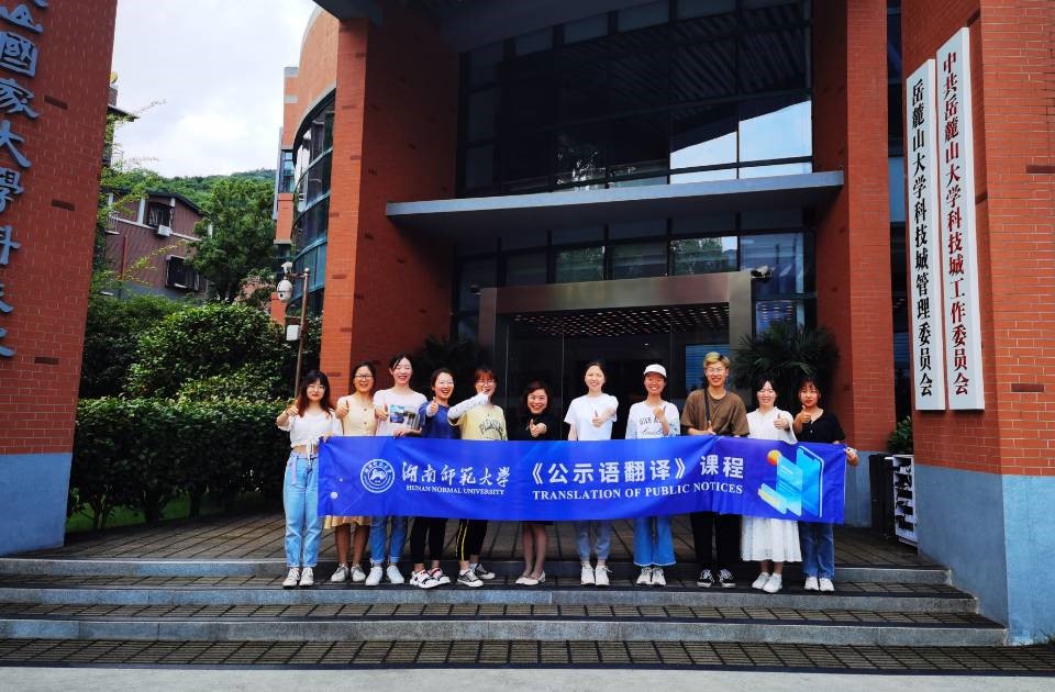 此次活动得到了岳麓山大学科技城党政综合部部长徐祎琳的大力支持,由太阳成官网教授蒋莉华带队指导,岳麓山大学科技城党政综合部老师瞿辰接待,《公示语翻译》课程全体学生参加学习。