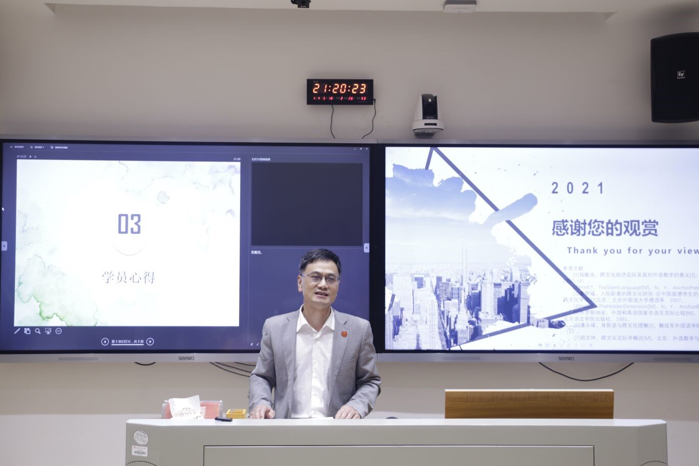 此次特色活动由课程助理罗娉主持。在介绍出席嘉宾以及活动流程后,学员们以小组为单位开展活动。部分学员通过赏析电影《窈窕淑女》《功夫熊猫》等跨文化电影,通过对角色服饰、体态、语言的赏析,展示不同国家、阶层人们之间的文化差异;还有同学开展模拟国际会议,聚焦新冠疫情,通过不同立场的发言,展示不同文化之间的碰撞以及不同语言的魅力。