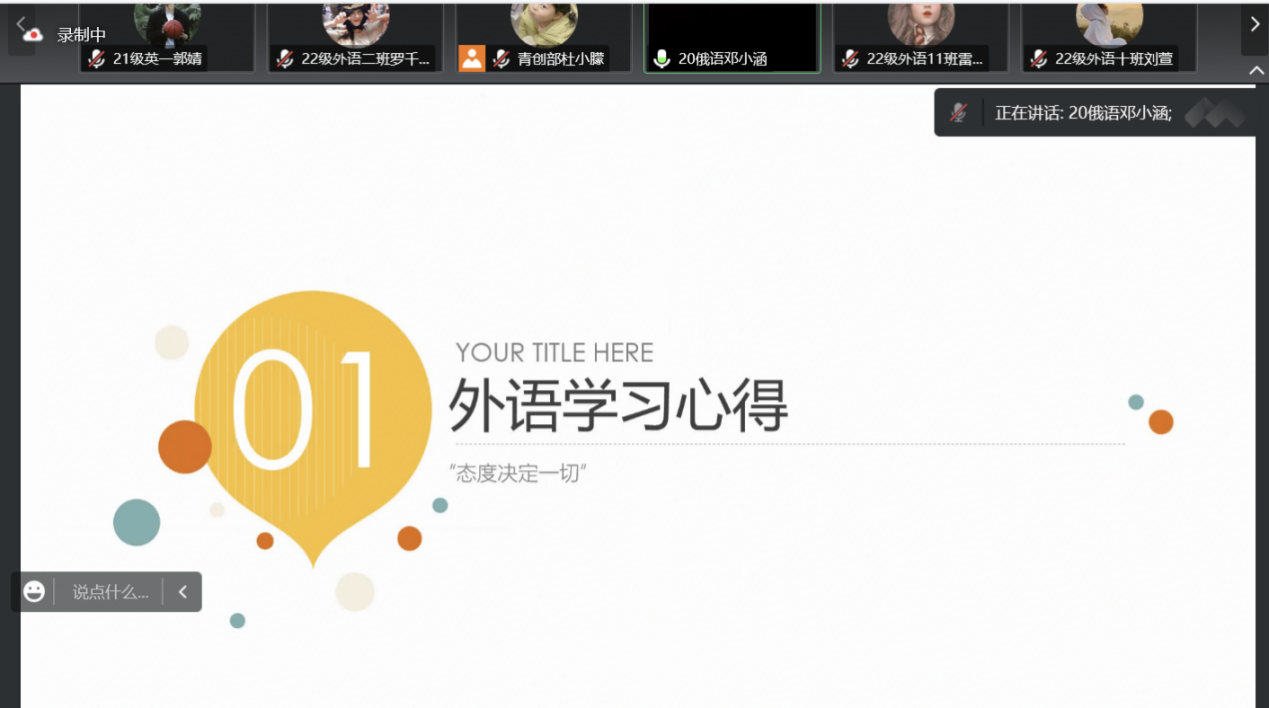 (通讯员 郭婧 周子楠)传经授道,携手并进。12月3日下午,太阳成官网团委举办外语学习经验交流分享会。本次分享会由2020级俄语专业本科生邓小涵主讲,团委青创部负责人杜小朦主持。