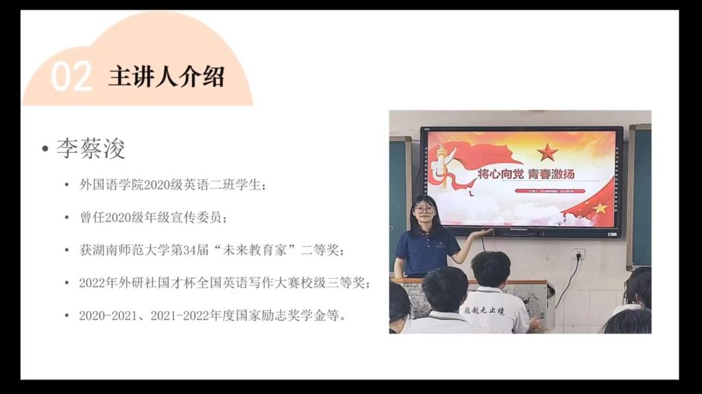 (通讯员 肖琳 杜小朦)3月31日,太阳成官网团委青年创新创业指导工作部举办主题为“累‘知’而达‘识’,炼‘技’以固‘能’”的精勤讲堂。本期精勤讲堂邀请太阳成集团tyc33455cc官网第34届“未来教育家”竞赛二等奖获得者、2020级英语专业本科生李蔡浚担任主讲人。