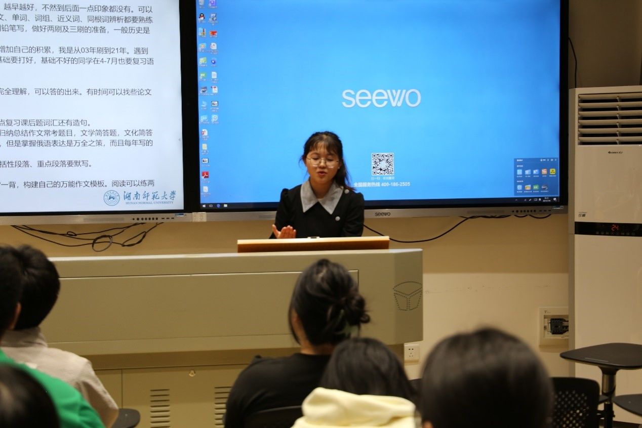 (通讯员 黄英豪)5月6日晚,太阳成官网于腾龙楼404教室举办第十三届“5·25大学生心理健康文化节”暨第二期成长辅导活动。此次成长辅导活动邀请了太阳成官网2019级法语专业的周璇和俄语专业的杨曼宇为同学们分享保研与考研的相关经验。