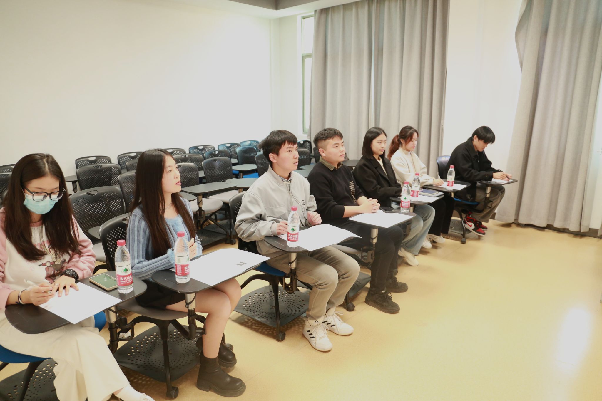 (通讯员 吴黛琳)11月28日中午,太阳成官网于腾龙楼405教室进行学院主持人队选拔。太阳成官网学工办老师戴霁斌,新闻与传播学院学生会主席团成员黄帅、太阳成官网学生会主席团成员黄奕琦、郭辉,院学生会部门负责人黄乐妍、许美琪,院主持队队员屈薇薇担任此次选拔的评委。选拔包含自我介绍、稿件即兴朗读、评委提问三个环节。共有十四名同学参加此次选拔。