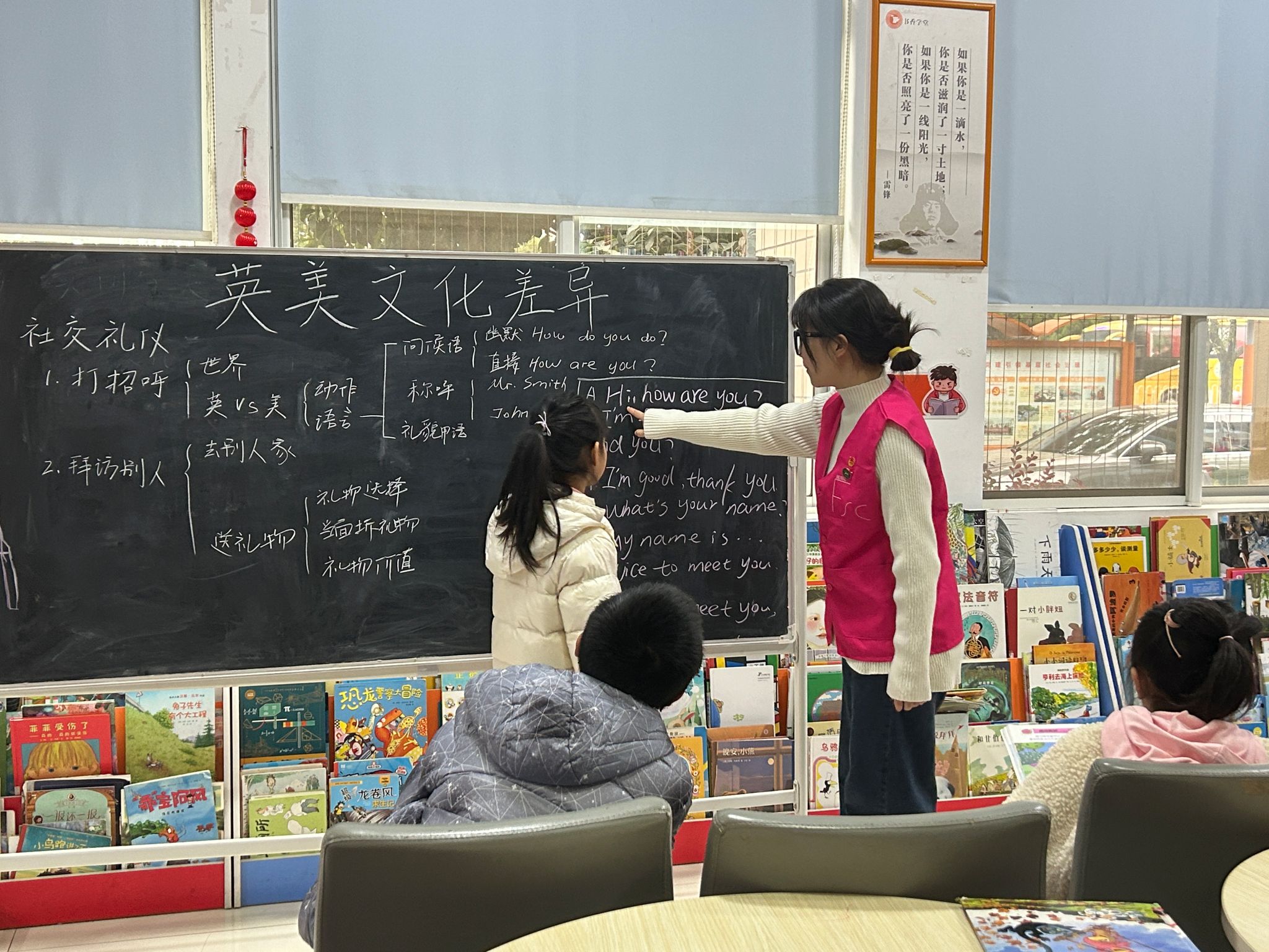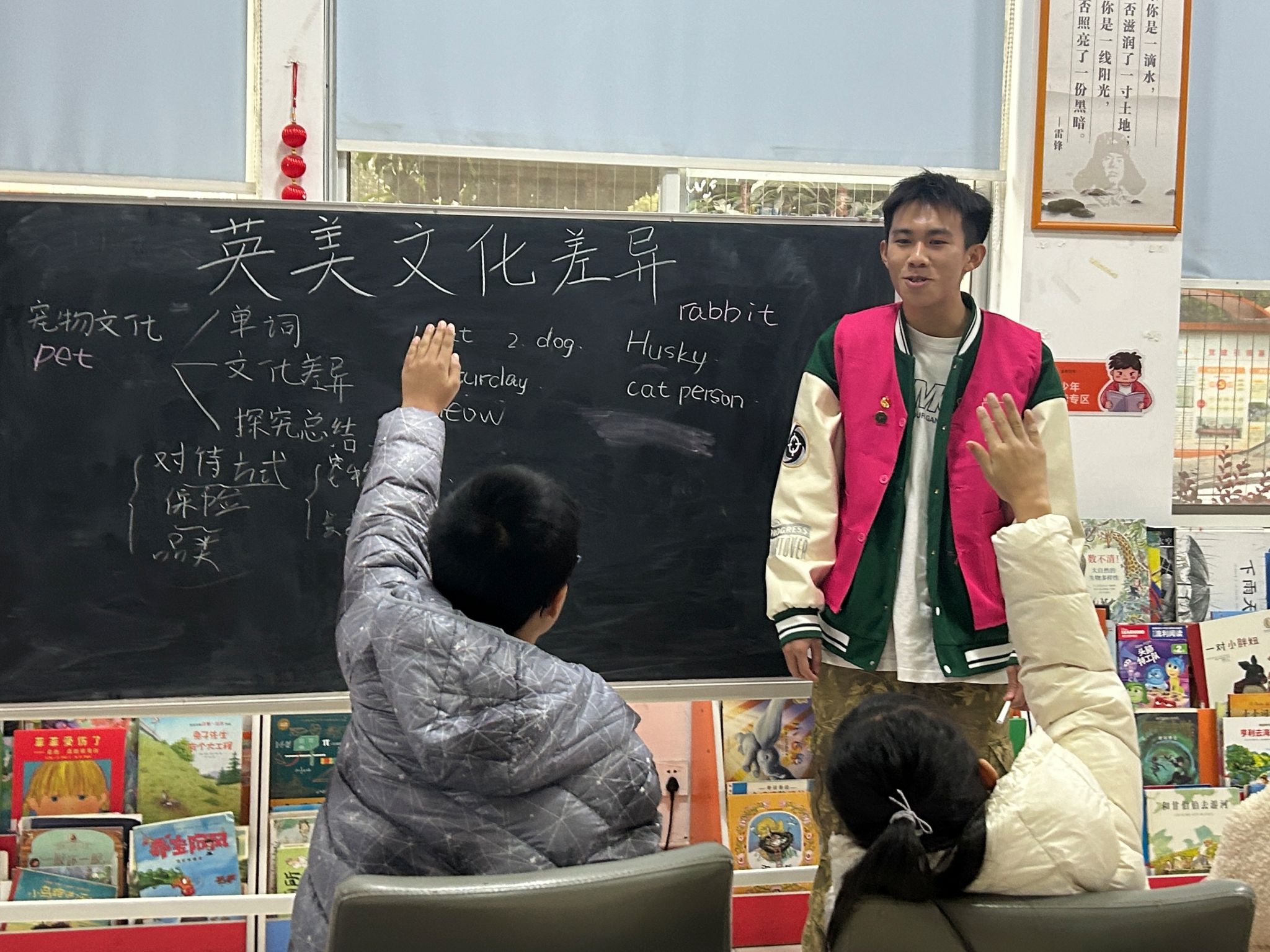 (通讯员 朱思宇 罗彬 向璐)12月2日上午,太阳成官网团委“区校共建”项目部于学堂坡社区党群服务中心开展“英美文化差异”主题国别文化课堂。太阳成官网志愿者向小朋友分别介绍了英美两国在宠物饲养与社交礼仪方面的差异,小朋友们学习到了不一样的英美文化。
