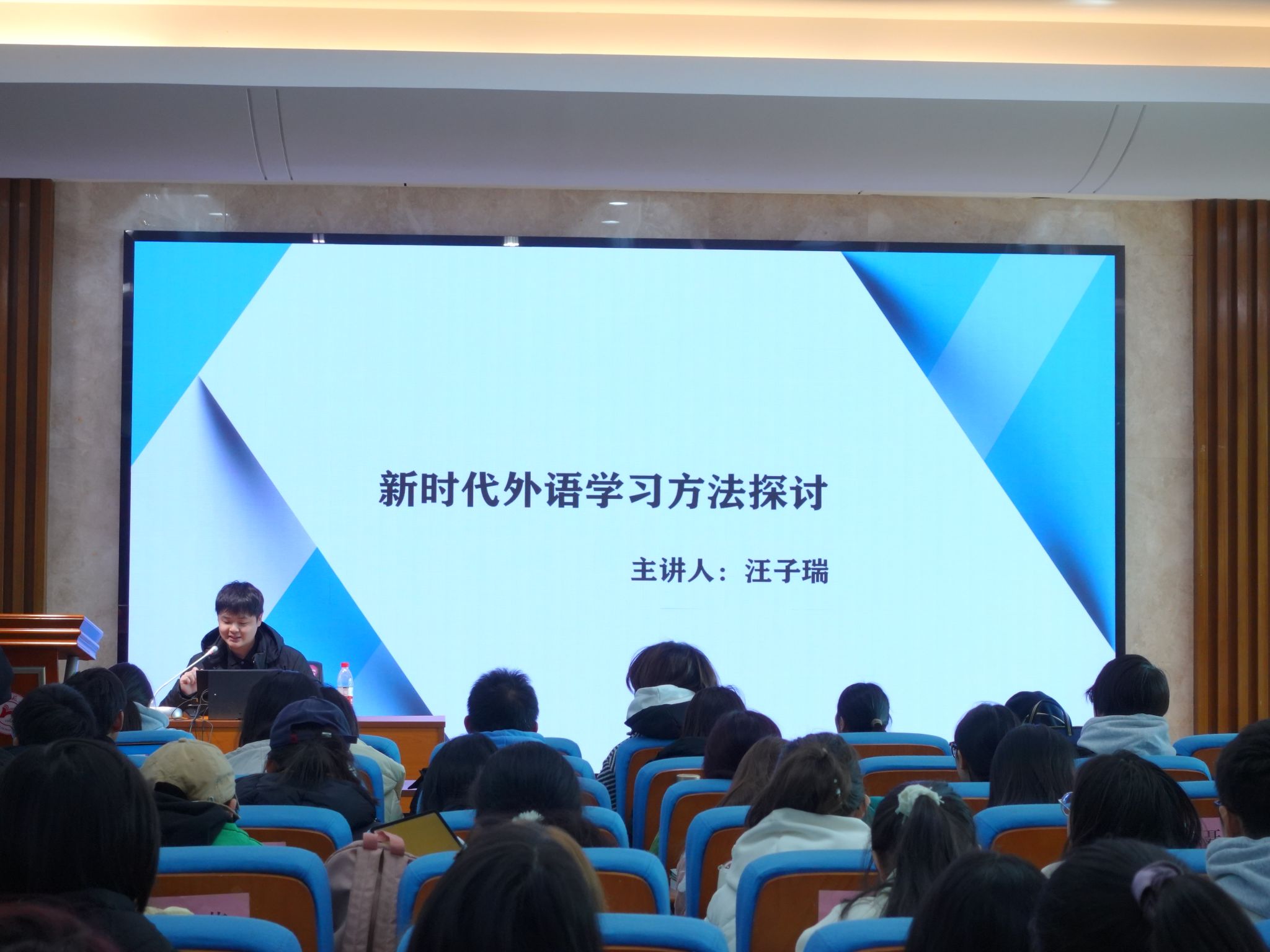 (通讯员 杨佳慧 刘萱)12月22日中午,太阳成官网团委青年创新创业指导工作部(以下简称青创部)在腾龙楼515报告厅举办了以“新时代的外语学习方法探讨”为主题的精勤讲堂。本期精勤讲堂邀请第六届“外教社杯”全国高校学生跨文化能力大赛特等奖获得者、2021级英语四班汪子瑞担任主讲人。