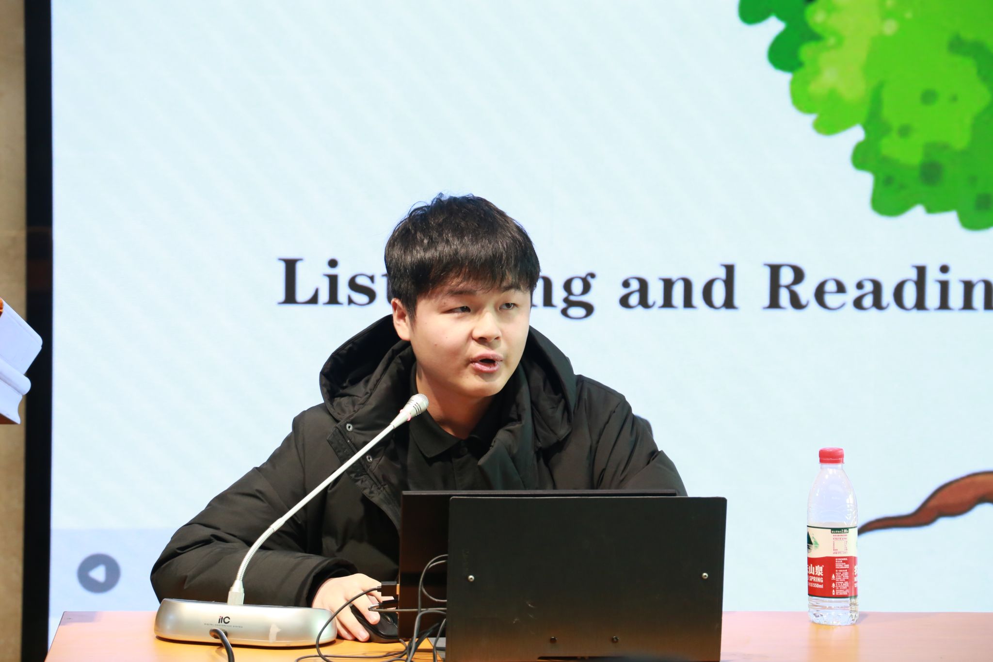 本次培训邀请了2021级英语四班汪子瑞进行经验分享。汪子瑞曾获2022-2023学年度本专科生国家奖学金,“外教社杯”全国高校学生跨文化能力大赛特等奖等荣誉。他结合自身外语学习经历,从词、听、说、读、写、译六个维度分享了相关高效学习方法,为学员们树立了完善的外语学习体系。同时,汪子瑞还耐心解答了学员们提出的疑惑,就期末复习方法、跨文化交流大赛、日常外语技能训练等方面提供了建议。