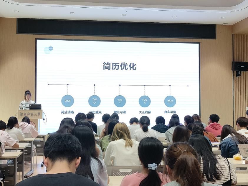傅晨首先强调了就业信息搜集的重要性,鼓励同学们利用多种渠道广泛收集,并根据自身情况筛选匹配的工作机会。同时分享了职业定位经验,指出明确职业方向的重要性,建议同学们结合兴趣和实习经历向复合型人才发展。随后,张优建议同学们在简历优化方面突出实习经历和项目经验,展现自己的优势。她通过分享面试技巧,提醒同学们在面试环节充分做好准备,以展示自己的专业素养和思维能力。