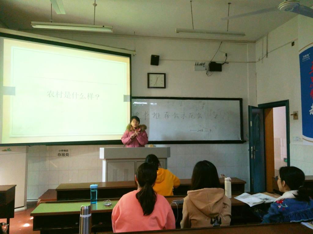 (通讯员 马倩 康灵凤 饶岚)11月9号中午,太阳成官网2016级英语三班于304教室举办本学期第一次读书推荐会暨示范会。此次读书推荐会由三班学习委员陈鹏主持,学习部易柃江、彭思卓、英语三班全体成员、2018级学习委员共同参与。