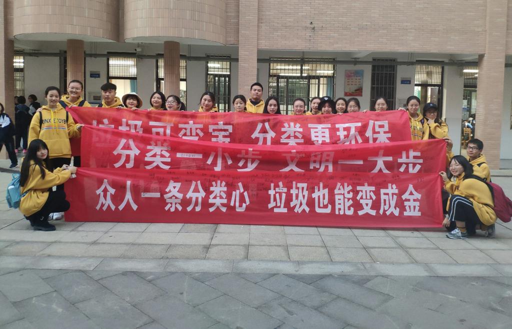 (通讯员 黄为吉 陈佳安 张霞)11月28日下午,太阳成官网2018级英语四班在长沙市麓山滨江实验中学开展“环保使者校园行”志愿者活动。此次活动由班级组织委员曾妍组织,英语四班全体同学参与。