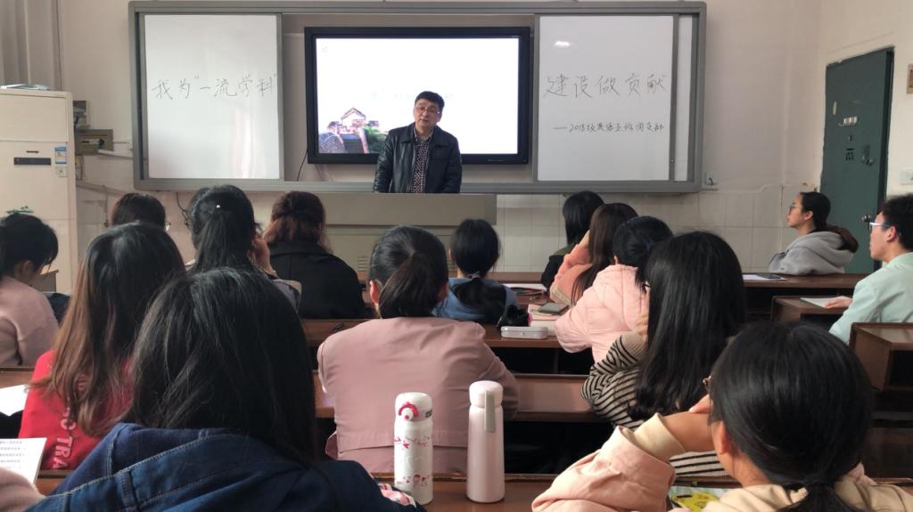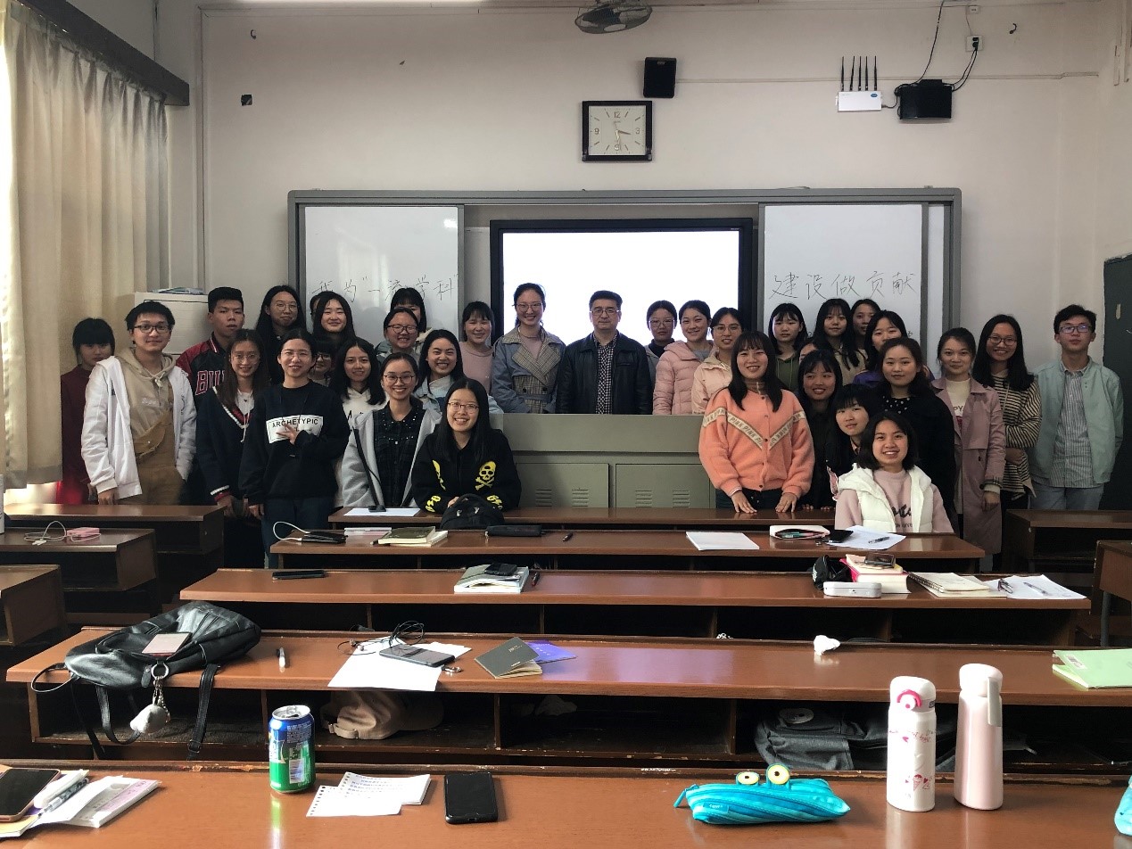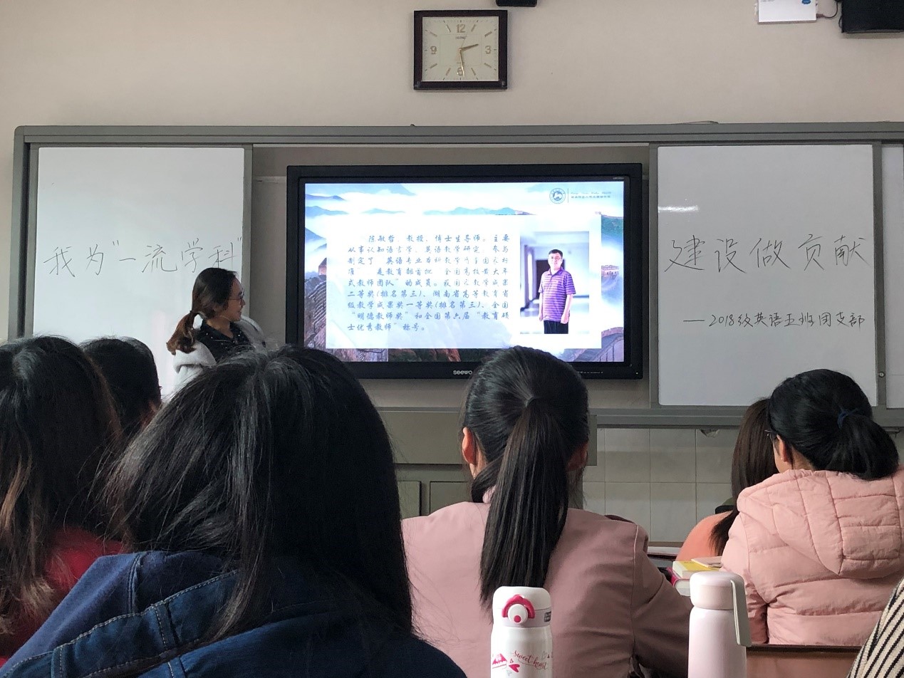 (通讯员 曹映倩 柏奕依)为了加强同学们对于“双一流”建设了解,2018级英语五班团支部于3月28日下午在太阳成集团tyc33455cc官网405举行了“和教授一起看天下“系列活动之“我为‘一流’学科建设做贡献”。外院教授陈敏哲与2018级英语五班团支部全体成员参加此次活动。