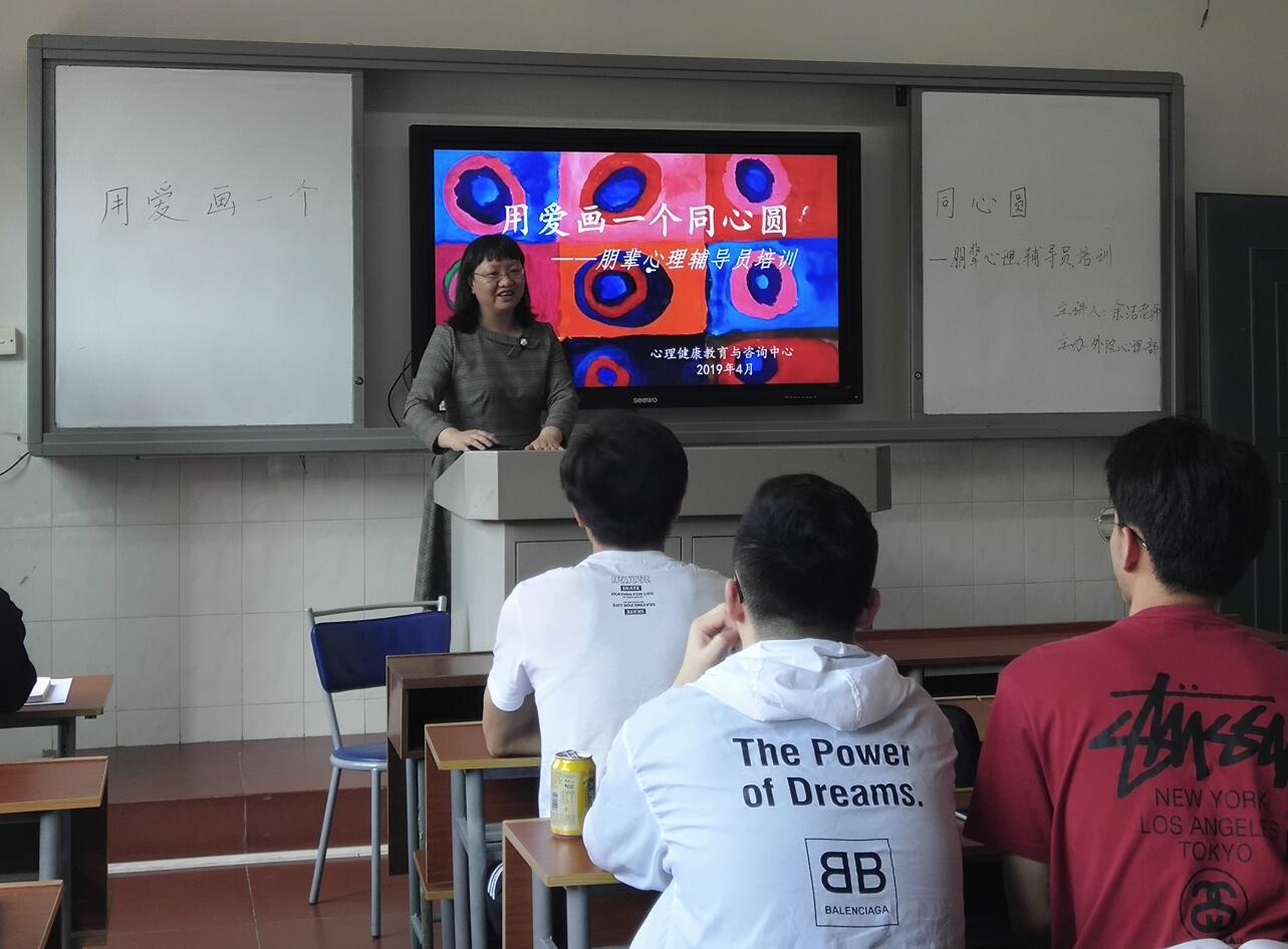 余洁老师以“用爱画一个同心圆——朋辈心理辅导员培训”为主题,详细介绍了朋辈辅导员的使命、职责、选拔条件和工作方法。她强调“朋辈心理辅导员是健康心灵的使者,是和谐校园的卫士。”她呼吁同学们关心身边同学的心理状况,积极帮助有需要的同学,同时提出了人际交往中的多条原则,即尊重、平等、协作、互惠、信用、适度等。在沙龙最后的夸夸环节中,余洁老师带领同学们领略了赞美的力量,沙龙在欢声笑语中结束。