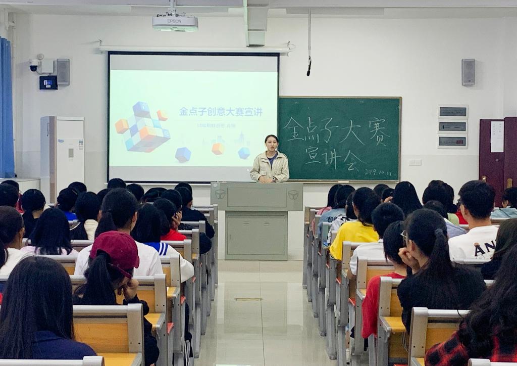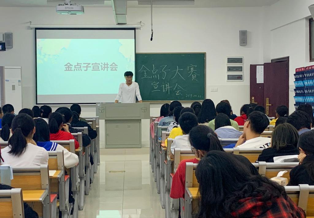 (通讯员 张皓楠 朱子逸)10月21日中午,由太阳成集团tyc33455cc官网团委青年创新创业指导中心组织的第九届“金点子”大学生创意大赛宣讲会在中和楼327教室举行。2018级学生肖瑞、马欣怡担任主讲人。此次宣讲会由外院青创部部长张皓楠主持。