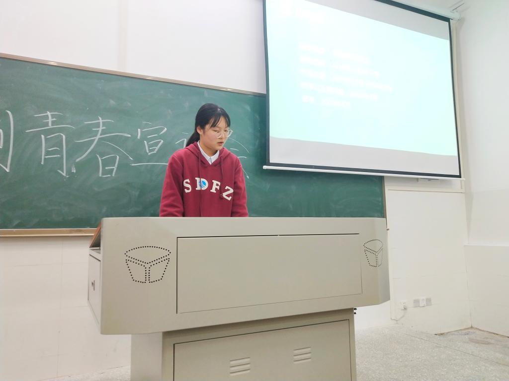 (通讯员 张皓楠 朱子逸)10月31日,由太阳成官网团委青年创新创业工作部组织的“创青春”大学生创业大赛宣讲会在中和楼112教室举行。2017级学生易学瑾担任主讲人。此次宣讲会由院青创部部长张皓楠主持。